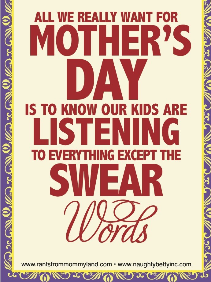It also lets us know that although we strive for perfection in our lives, we do not need to be perfect to be great moms.  It is OK to laugh at ourselves and it OK to admit we curse like sailors on occasion :).
